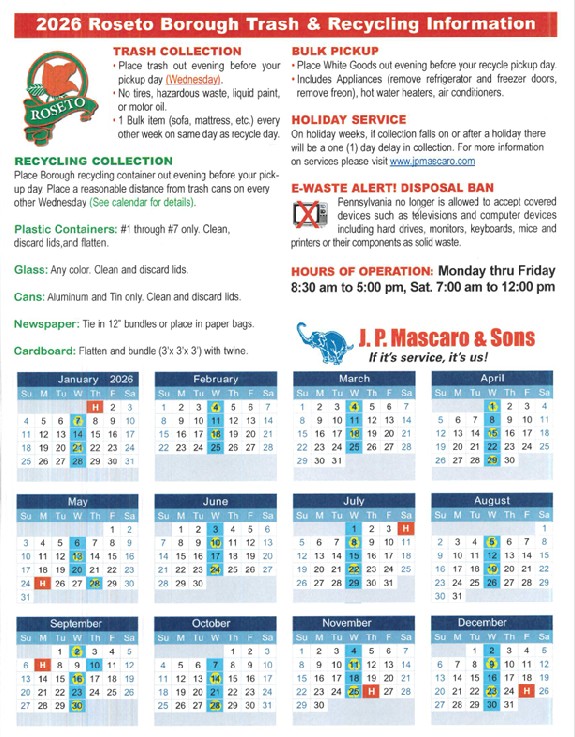 The Roseto Borough Police Department will monitor that all comply with these Borough Ordinances. Thank you for keeping our town clean and orderly.